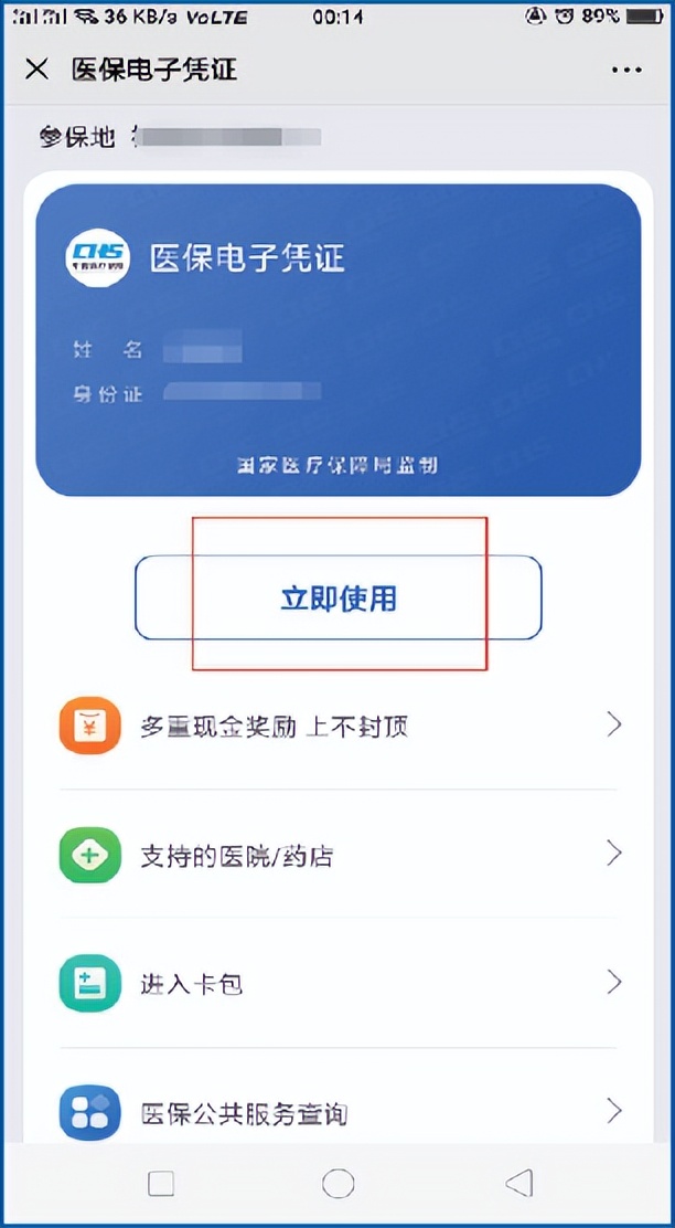 第七步:人臉識別成功后即可成功激活醫保電子憑證,點擊“立即使用”即可使用。
