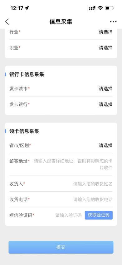 按照提示填寫領卡城市和郵寄地址等相關信息。