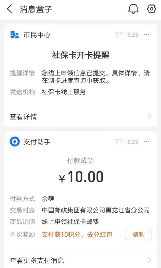 審核通過后進入制卡流程,等待投遞。可通過“制卡進度查詢”主動查看審核信息。如審核失敗,支付寶會在首頁“消息”欄目推送消息告知。