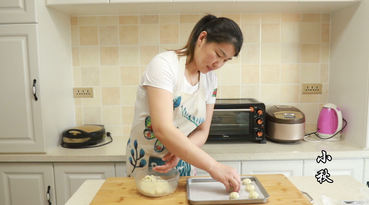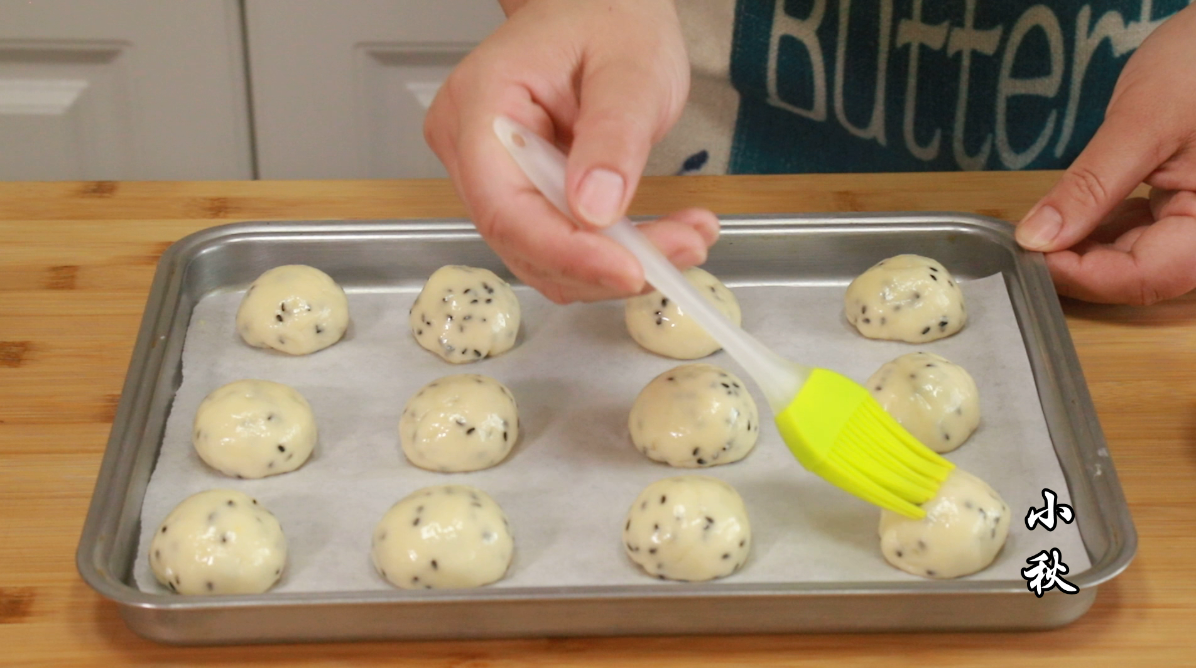 3,全部做好之后用刷子在上面蘸一點水,放到預熱好的烤箱里,上下火180°烤20分鐘