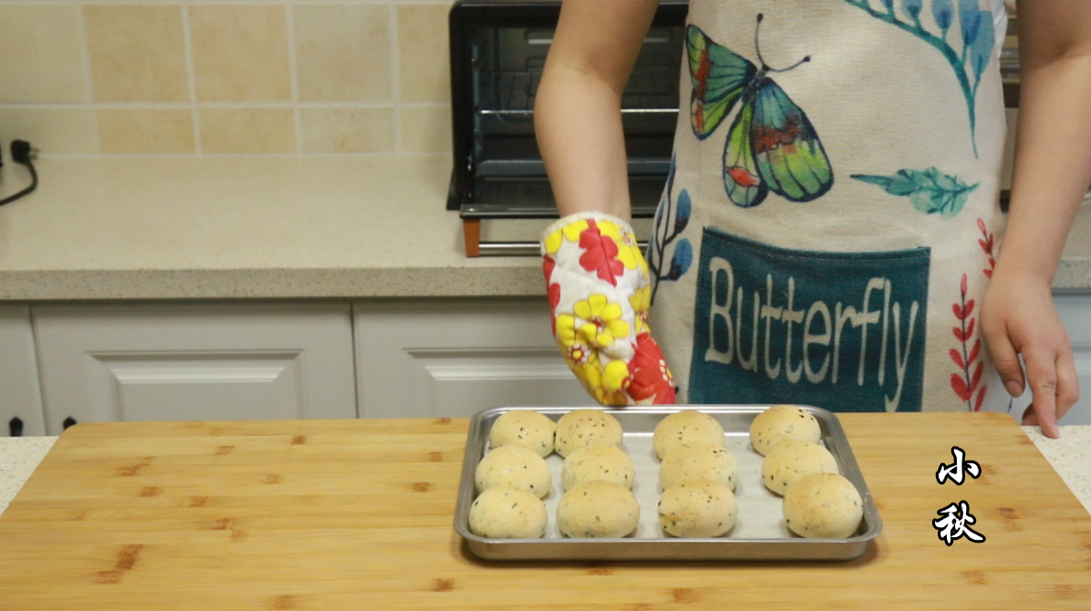 時間到,麻薯面包就烤好了