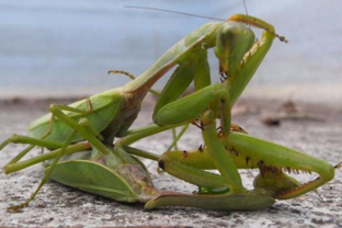 螳螂是廣食性昆蟲,捕獵各類昆蟲和小動物,基本上什么活物都不會拒絕,只要能抓住。不管是昆蟲、蜘蛛還是青蛙、老鼠或鳥,都在螳螂的捕食記錄中。雄螳螂對雌螳螂來說,當然也可以算是一頓美餐,雌螳螂會在交配前、交配后或在交配的時候回過頭用嘴啄雄螳螂。