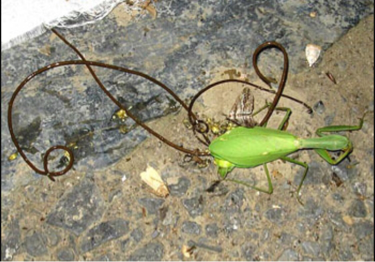 鐵線蟲,又名發形蟲。鐵線蟲體細長,馬鬃狀,長可達1米。對于螳螂來說是一種致命的寄生蟲。它們常見于熱帶和溫帶。在國內分布于南北各省;國外則廣泛分布于世界各地。成蟲棲息在海水或淡水中自由生活,而幼蟲則寄生在節肢動物(如螳螂、蝗蟲等)體內。