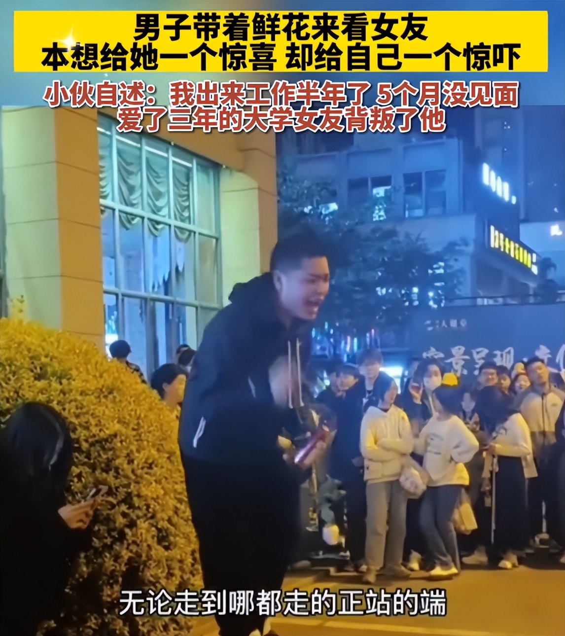 男友帶著鮮花,專程到學校看女友,想象著見面時的幸福,擁抱時的溫暖。本想著給她一個驚喜,便沒有提前告知,也正是這一舉動,讓他明白了事情的真相,看到了女生的真面目。