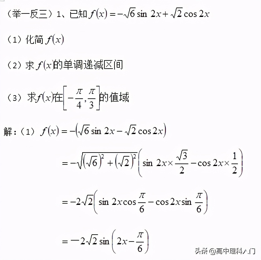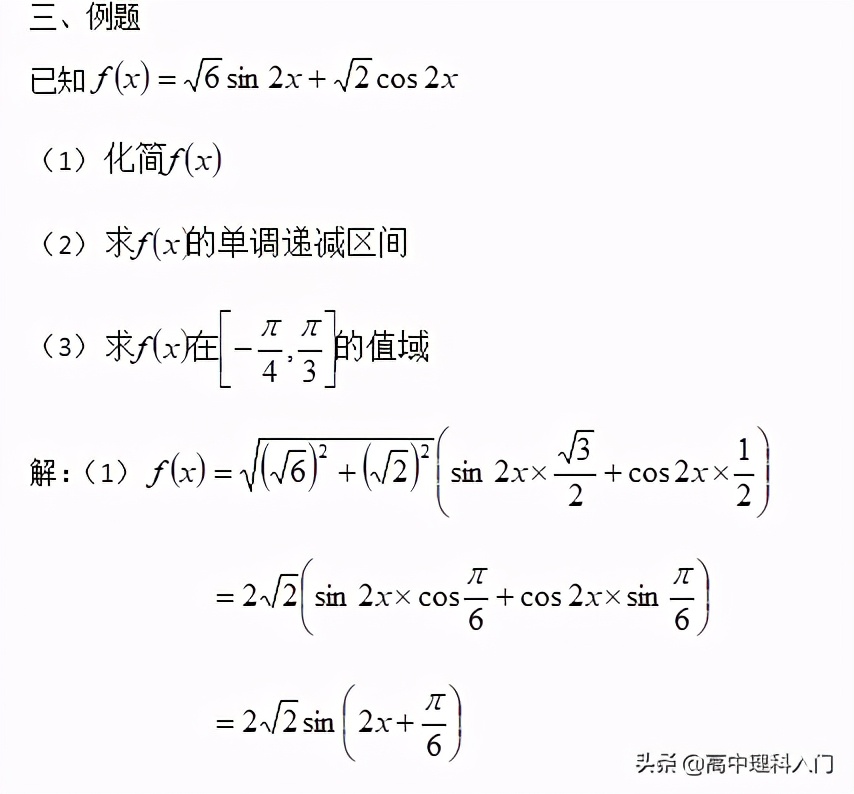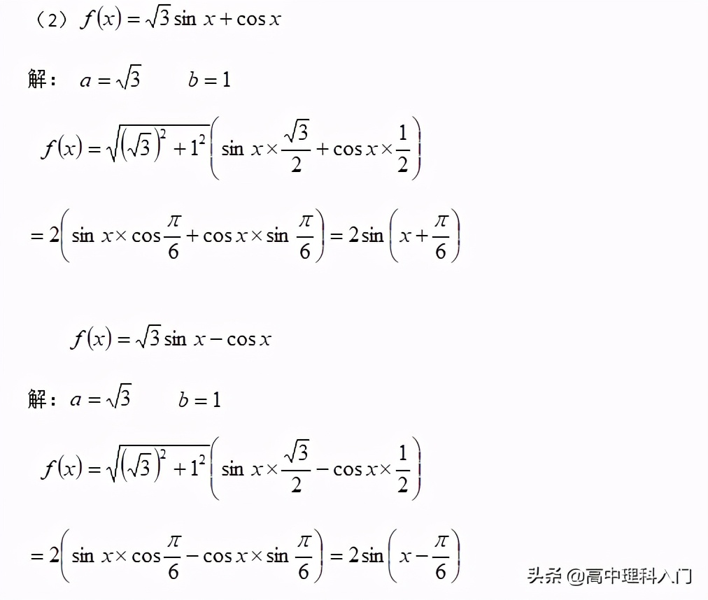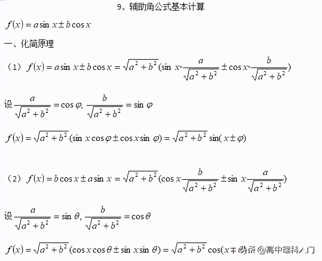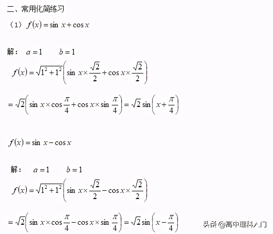 綜上所述:一般計算使用sin不使用cos輔助角公式,sin和cos的輔助角互余,有負號先提出負號,注意化簡完成后的檢驗。