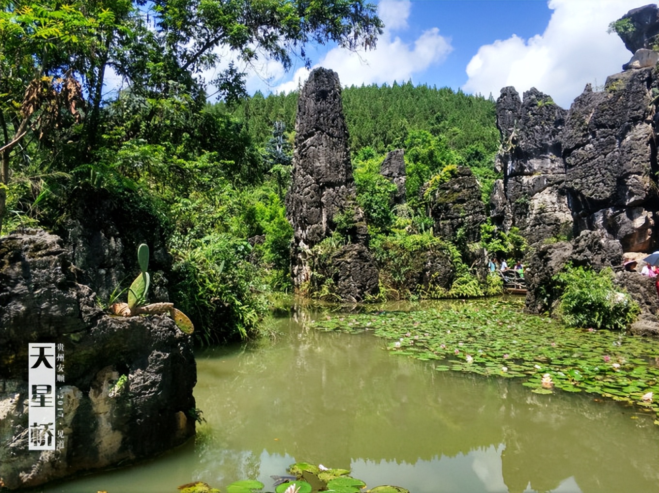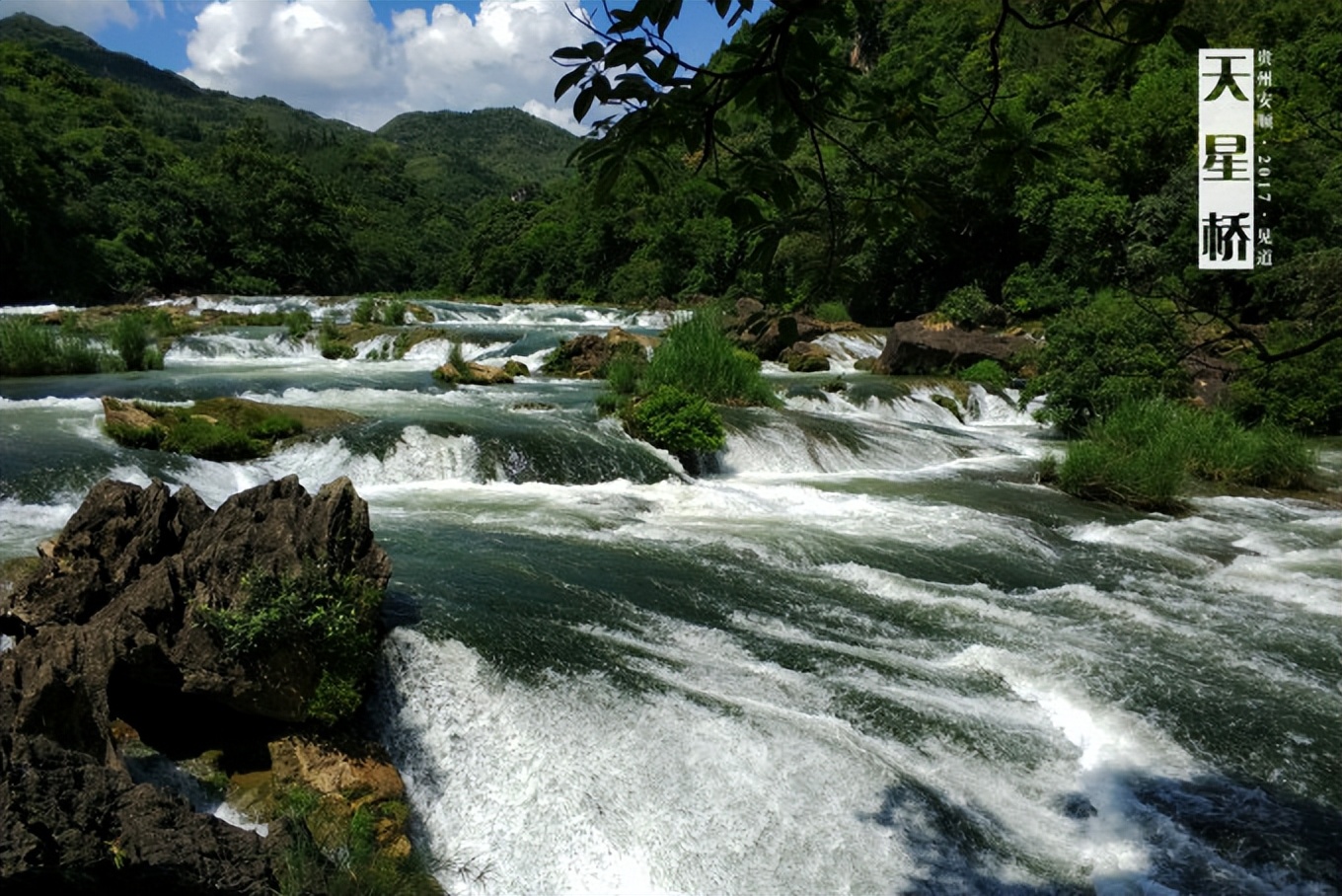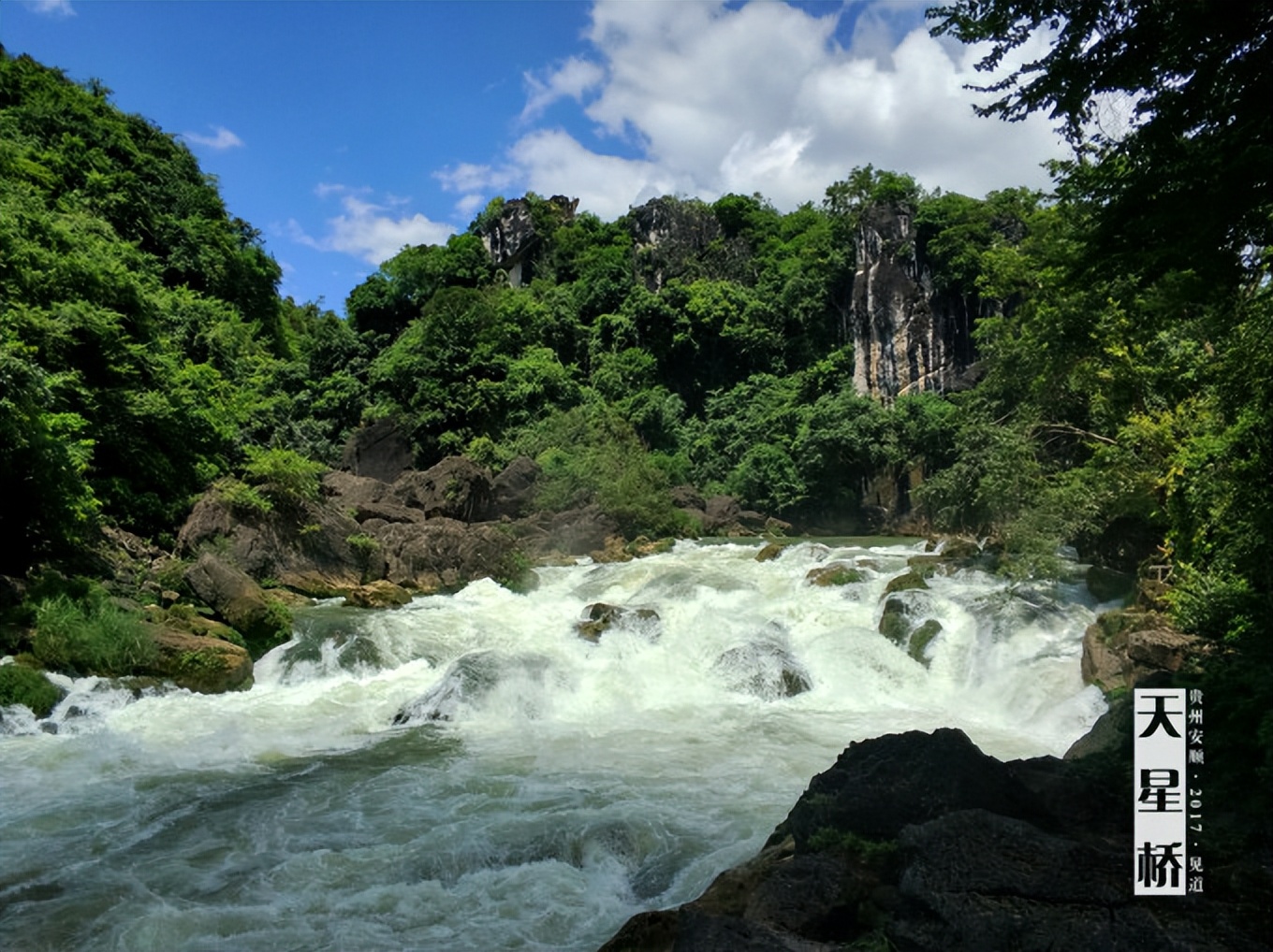 天星橋景區,在黃果樹大瀑布下游七公里左右的地方。這是一個風格完全不同于大瀑布的景區。