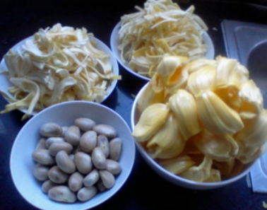做法:將菠蘿蜜的果肉和籽分好,用水沖一下,倒在鍋里。(可在籽上面劃幾下,以便于入味)