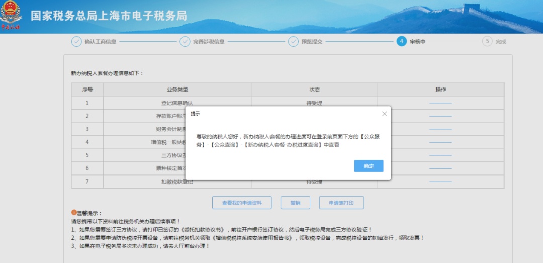 新辦納稅人套餐的辦理進度可在登錄前頁面下方的【公眾服務】-【公眾查詢】-【新辦納稅人套餐-辦稅進度查詢】中查看。