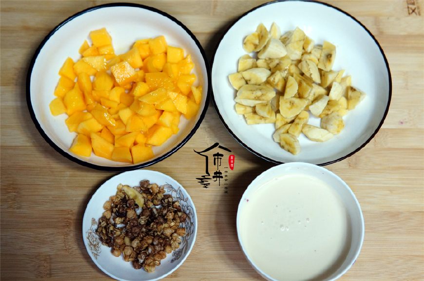 今天想做的酸奶水果撈用的主料是芒果跟香蕉,這兩種水果搭配在一起有一種特別美妙的感覺,香滑可口,真的是絕配,再加上一些谷粒多中的燕麥和干果,口感真是好到爆,下面我們就一起來做一份酸奶水果撈吧,夏天我們就要這樣吃水果。
