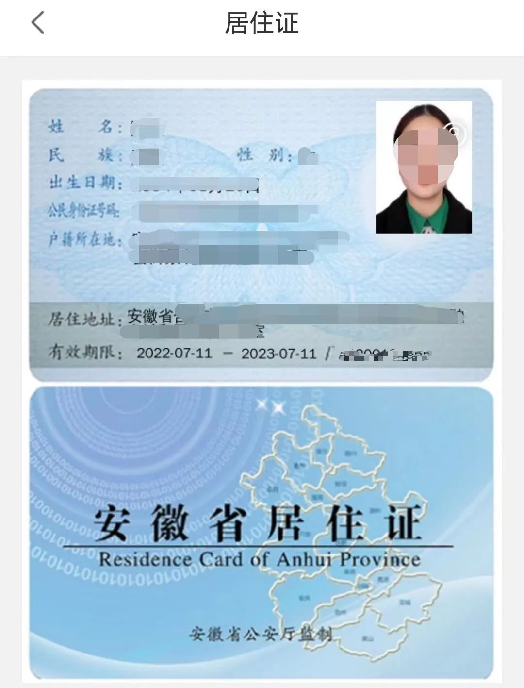 電子《安徽省居住證》