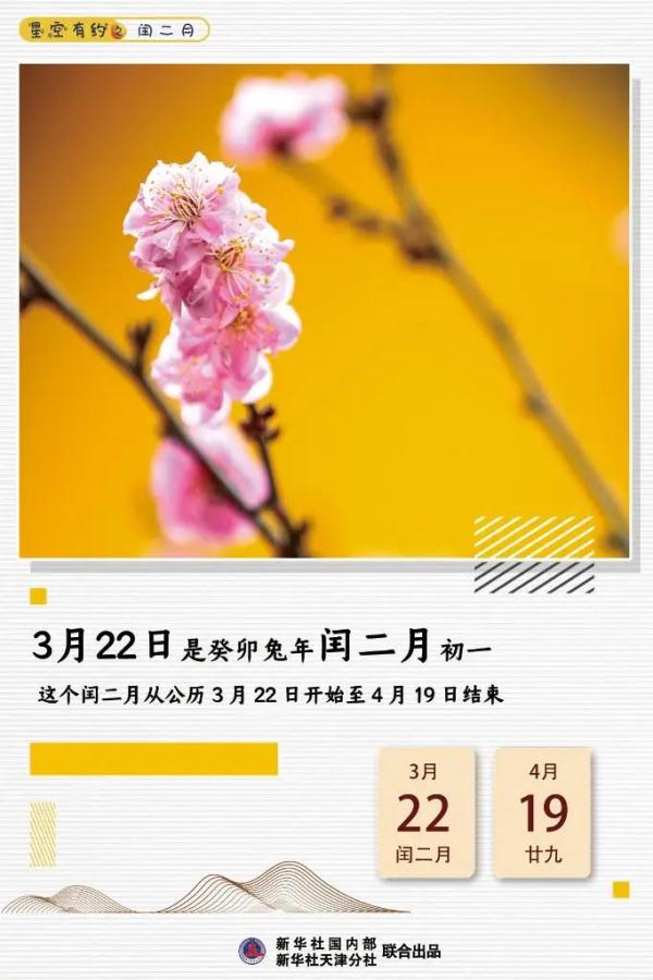 3月22日是癸卯兔年閏二月初一。天文科普專家表示,作為一種歷法現象,閏二月比較少見。就21世紀這100年來說,閏二月一共有4次。接下來的幾個世紀,閏二月出現的頻率逐漸下降,要么有一次或兩次,要么一次也沒有。