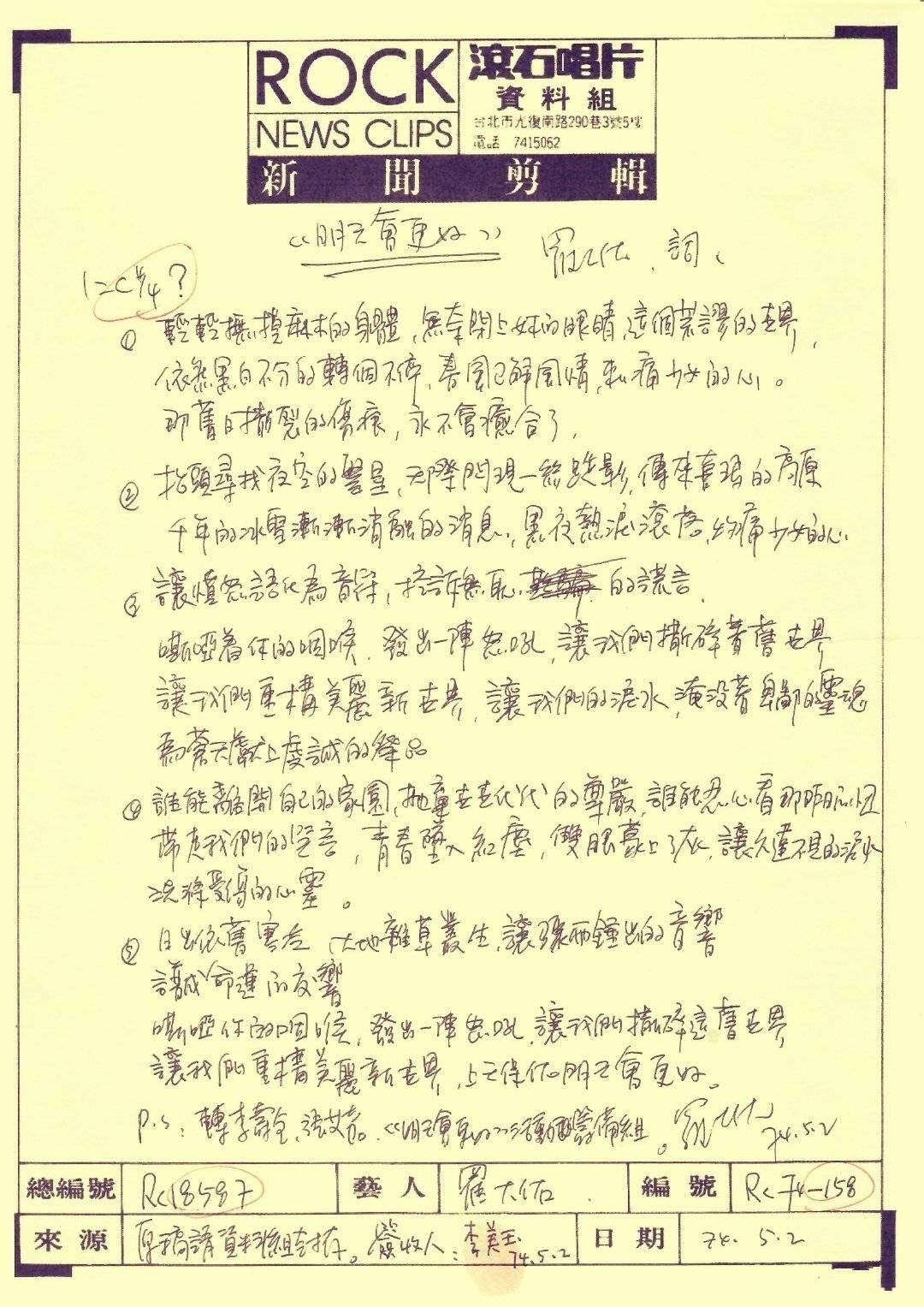導讀輕輕撫摸麻木的身體,無奈閉上你的眼睛,這個荒謬的世界,依然黑白不分的轉個不停,春風已解風情,刺痛少女的心,那舊日撕裂的傷痕,永不會愈合了,抬頭尋找夜空的繁星,天際閃現一絲蹤影,傳來喜瑪的高原 千年的冰
