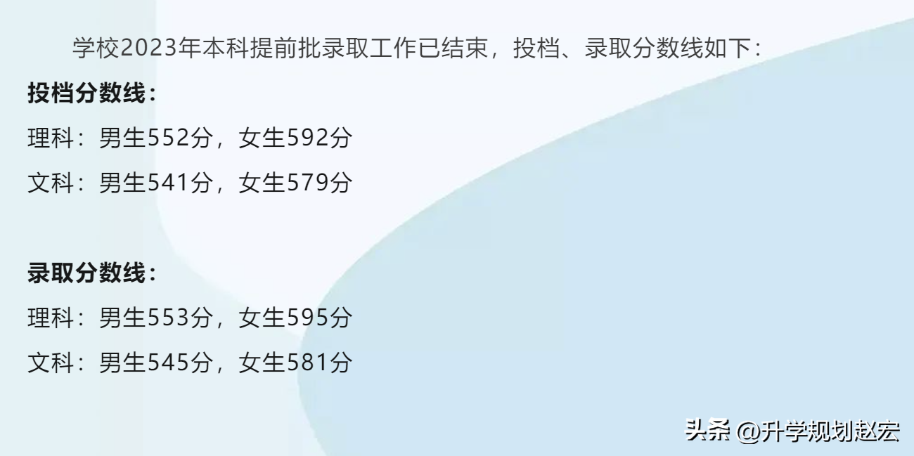 其實就業的問題,我上面只是說了這幾個點而已,真實的情況遠比這個要多很多。很多人說我酸,其實我壓根就不會報,因為我們知道背后的情況,而不是表面上的。建議大家看10步,然后再來選,而不是當下,真正出現我們說的情況是在6年7年這個時間點。直接看分數,感覺并不太明顯,接下來咱們來看看近4年的分數對比,男生人數多,理科男生多,文科女生非常少。2023年超一本線男生33分,女生75分,比2022年上漲了13分和15分,對應的位次就是10000多名。