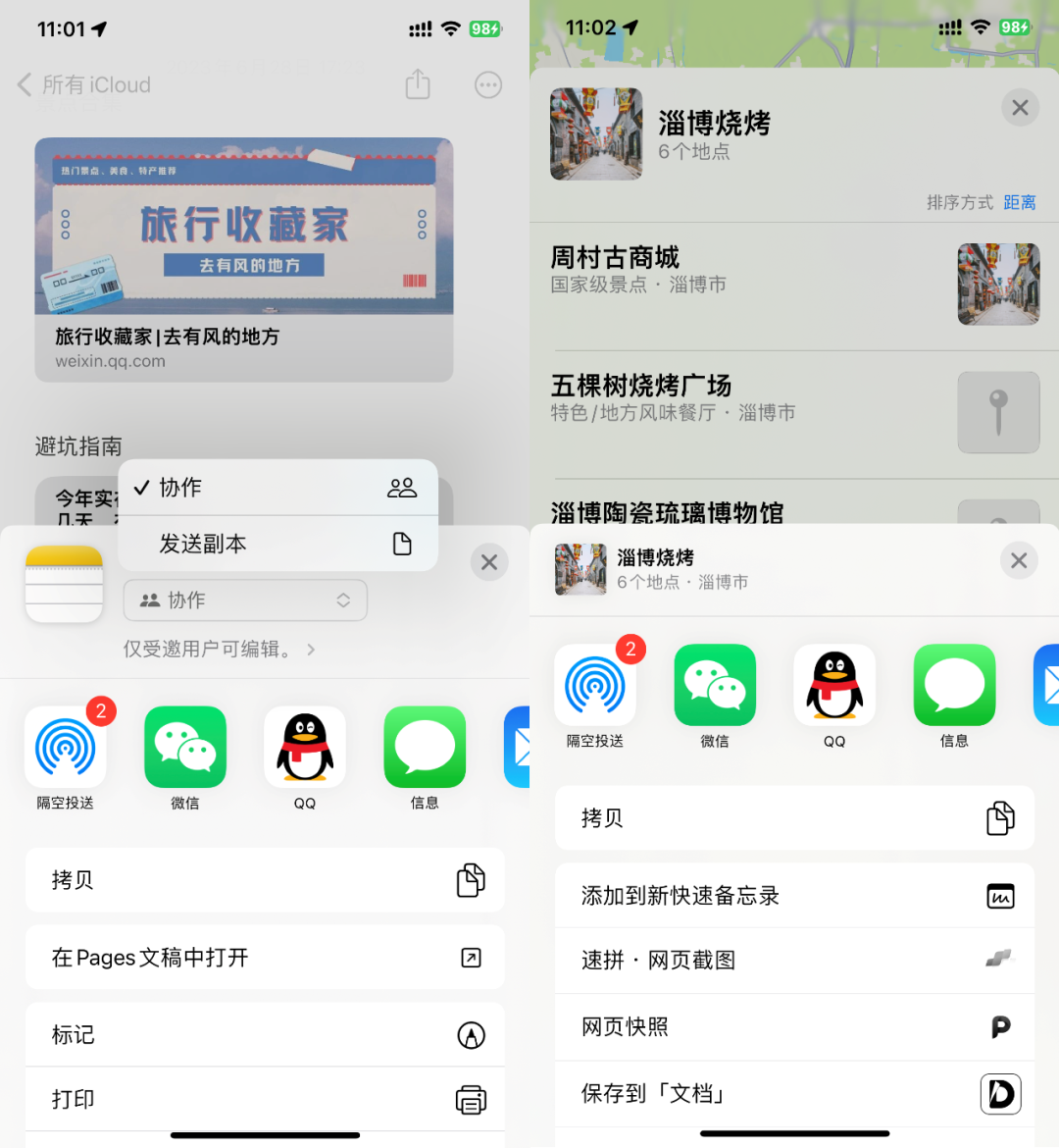 前面提到的旅行指南功能,就可以方便地通過AirDrop或者微信、QQ等第三方社交應用直接分享,即使對方沒有使用蘋果設備,也能點開通過網頁查看。