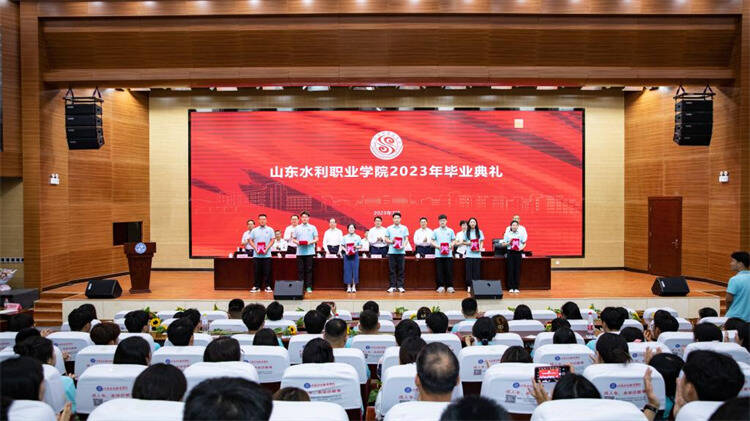 齊魯網·閃電新聞7月3日訊 7月2日上午,山東水利職業學院2023年畢業典禮在學術會議中心隆重舉行。學院領導、教務與科研處、學生工作處及各系部負責人出席活動,畢業生代表、在校生代表、教師代表參加畢業典禮,學院黨委委員、副院長林艷斌主持。