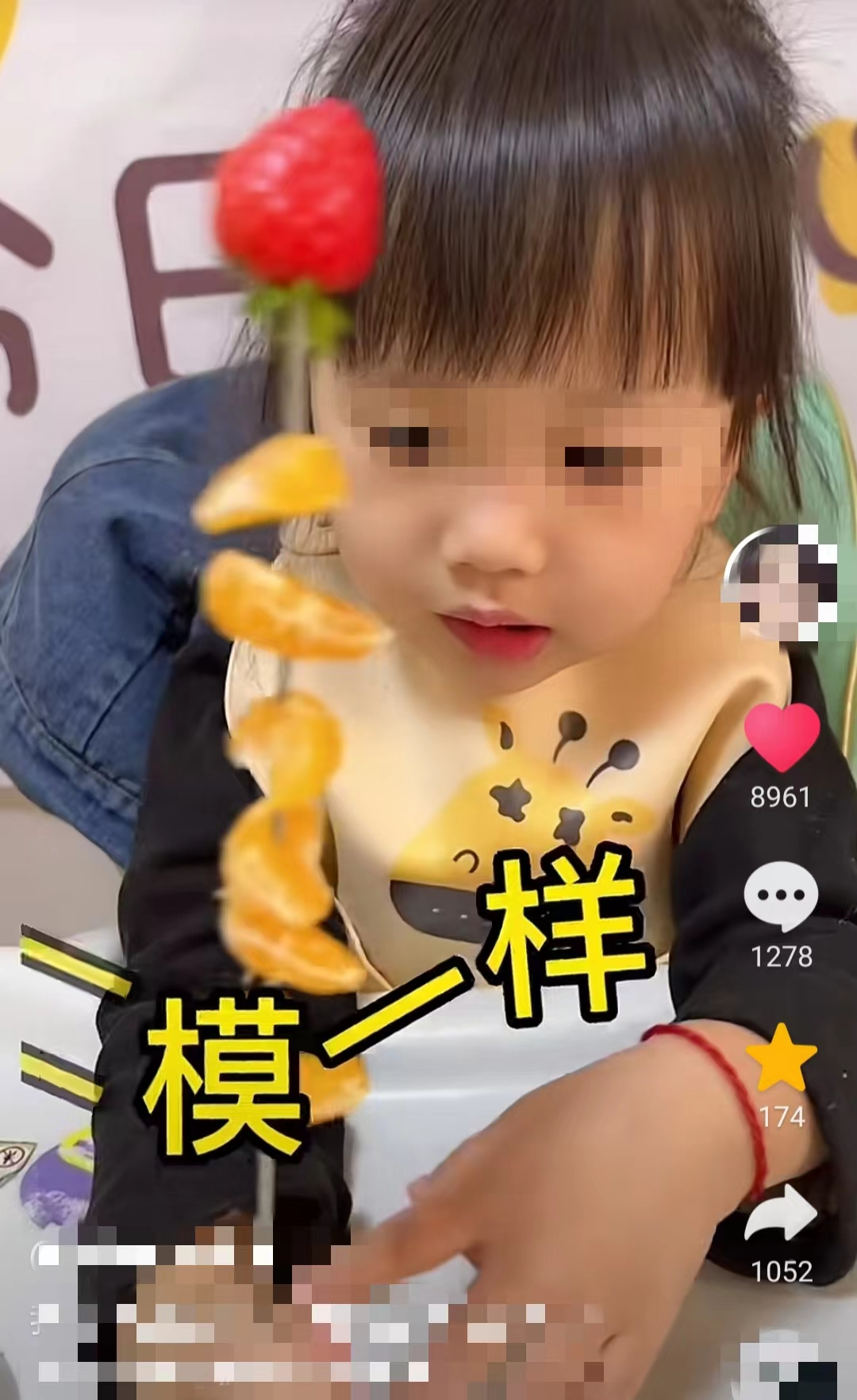 注意看,重點來了,小女孩有些無語的看著媽媽做給她的冰糖葫蘆,語出驚人,直接來了句:“二模一樣。”哈哈,當時看到這里,當即就被小女孩的這句話驚艷到了。