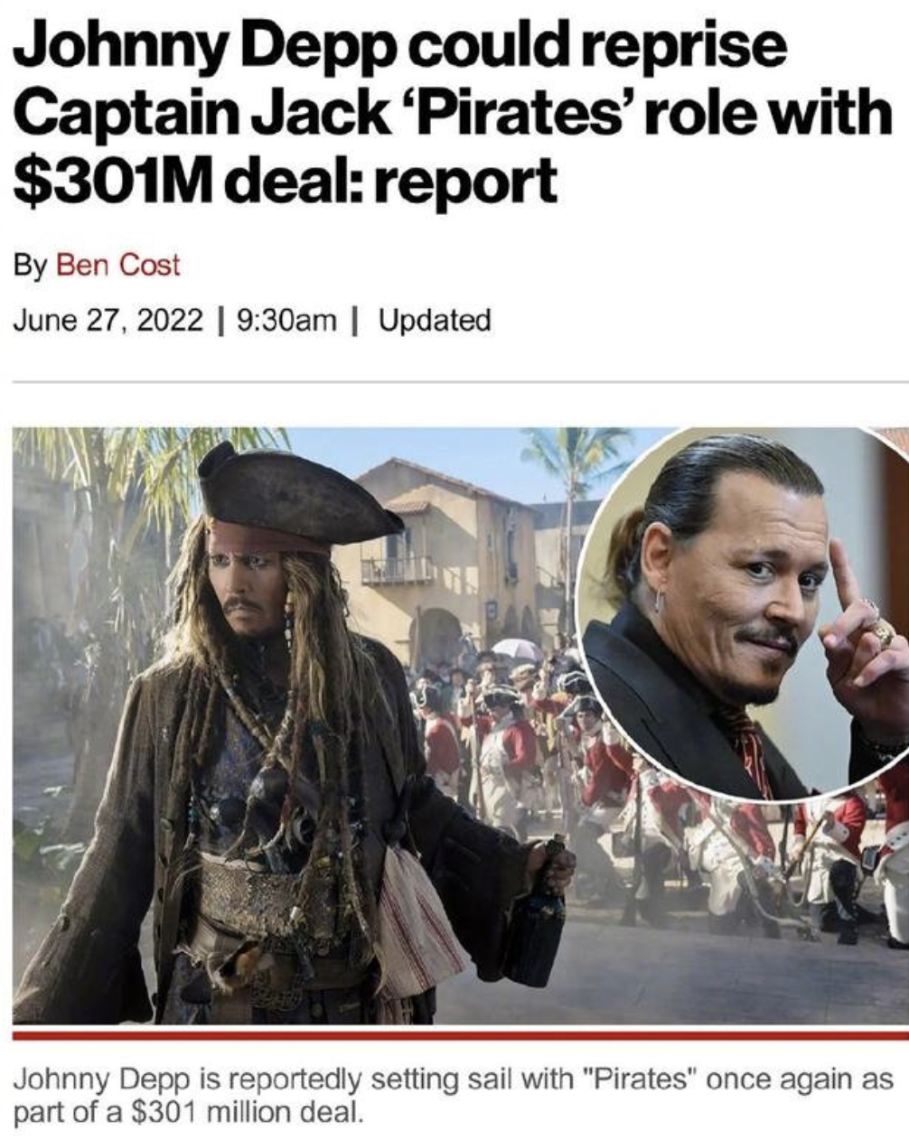 德普方面的回應,只說明這條新聞不實,并不意味著德普不愿意再演杰克船長。所以《加勒比海盜》的鐵粉們先別著急,可以期待一下德普和迪士尼的關系在未來破冰。