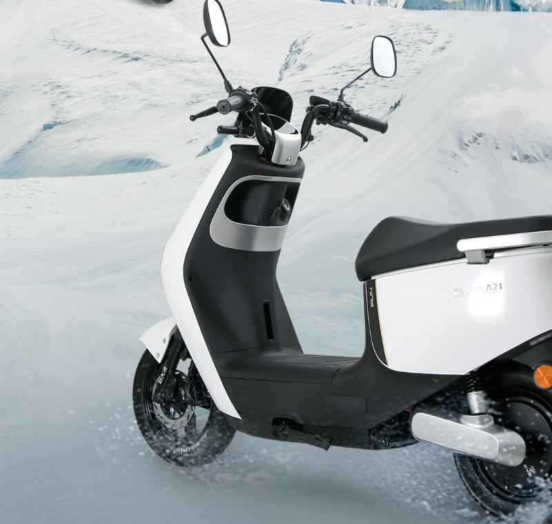 其他的細節方面,新大洲A21配置前碟后鼓的制動方式,另外配備前后液壓減震,采用10寸的朝陽真空輪胎,耐磨、防滑、抓地力強,可以輕松應對各種復雜的路況。