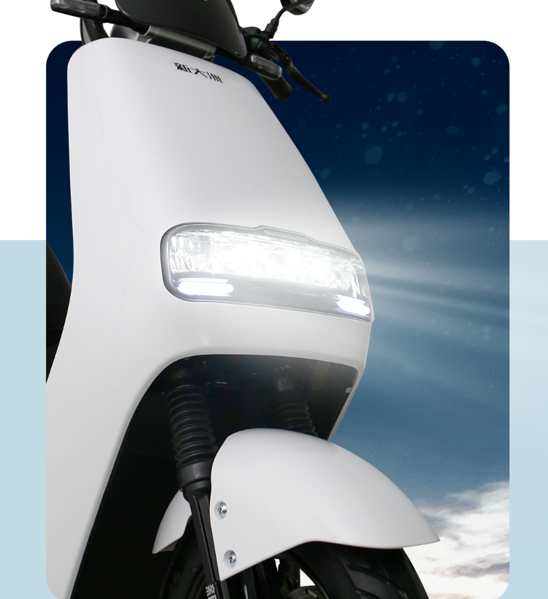 全封閉式的前臉配備了矩形的LED透鏡大燈,橫向排列,照射范圍廣,距離遠,后面配備一體的剎車尾燈,獨特的造型,擁有超高的辨識度,夜間出行也非常安全。