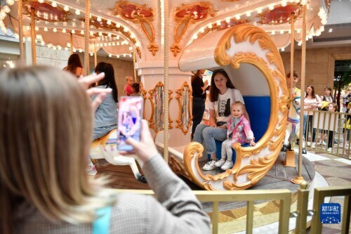6月1日,孩子們在位于俄羅斯莫斯科市中心的中央兒童商場玩耍,慶祝“六一”國際兒童節。