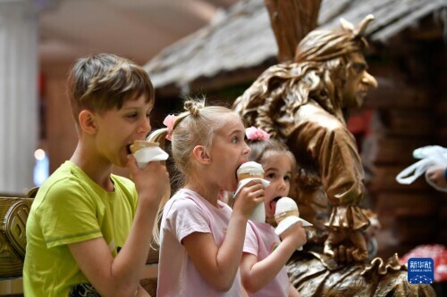 6月1日,孩子們在位于俄羅斯莫斯科市中心的中央兒童商場品嘗冰淇淋,慶祝“六一”國際兒童節。