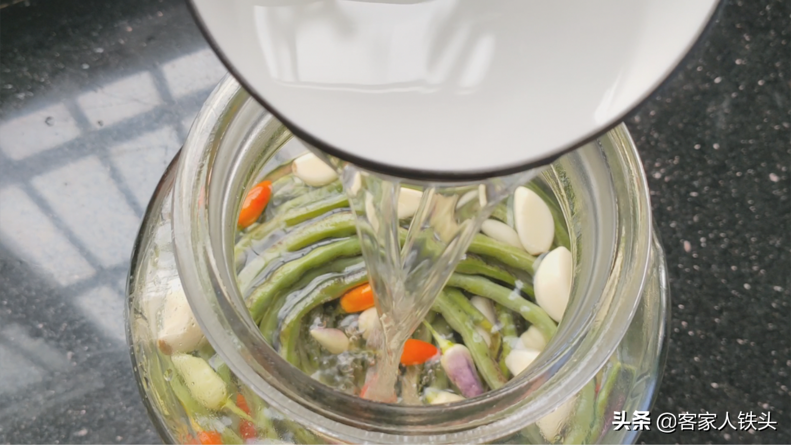 2、涼白開水量一定要能完全泡過豆角,豆角如果沒泡住,第二天就會開始壞了。