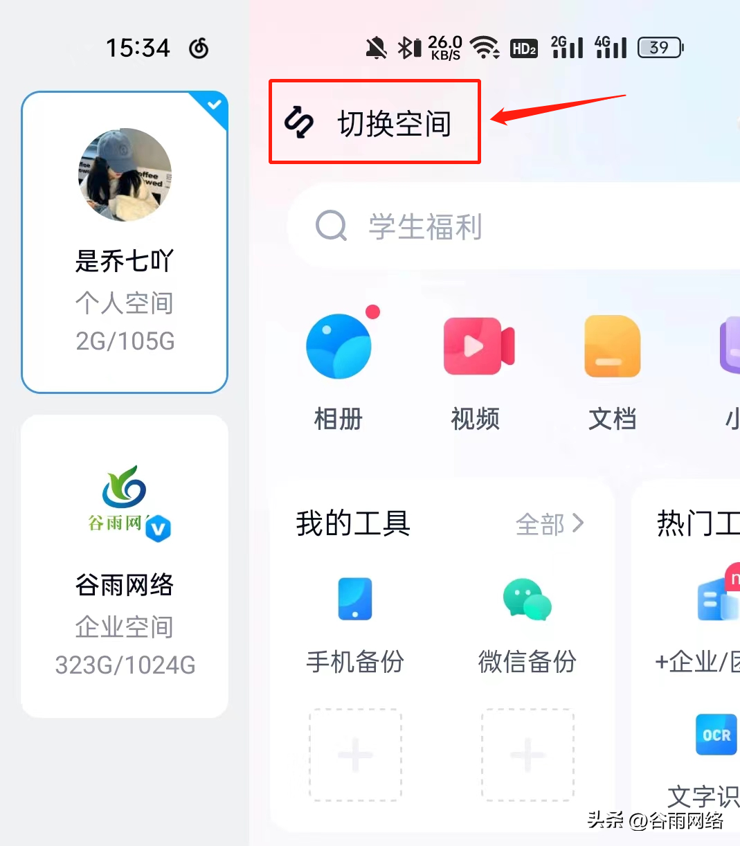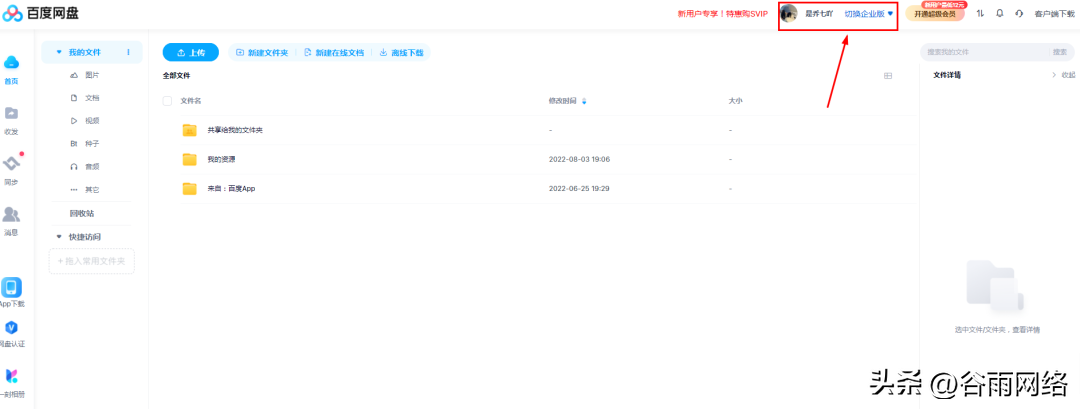 注意:可以切換的前提示有開通企業版哦,開通百度網盤企業版可參考: