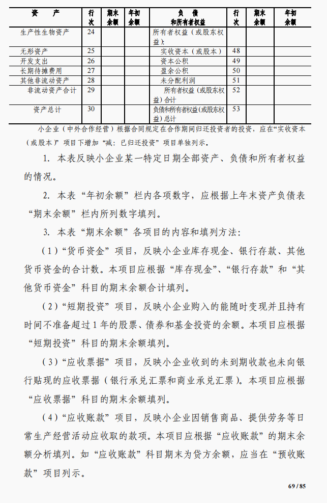 1、小企業會計準則資產負債表的格式和填寫說明