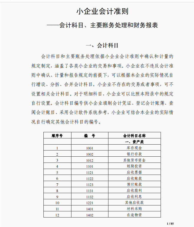 ……本文內容有85頁,今天在這里就不一一說明了。對于執行小企業會計準則的會計科目及賬務處理不明白的,上述的內容可收藏備查哦!