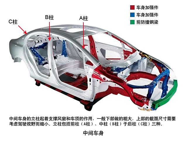 常聽說汽車上A/B/C柱,其實到底指的是哪些地方呢?一般轎車車身有三個立柱,從前往后依次為前柱(A柱)、中柱(B柱)、后柱(C柱)。立柱起增強和加固車身強度的作用,在碰撞的時候至關重要。