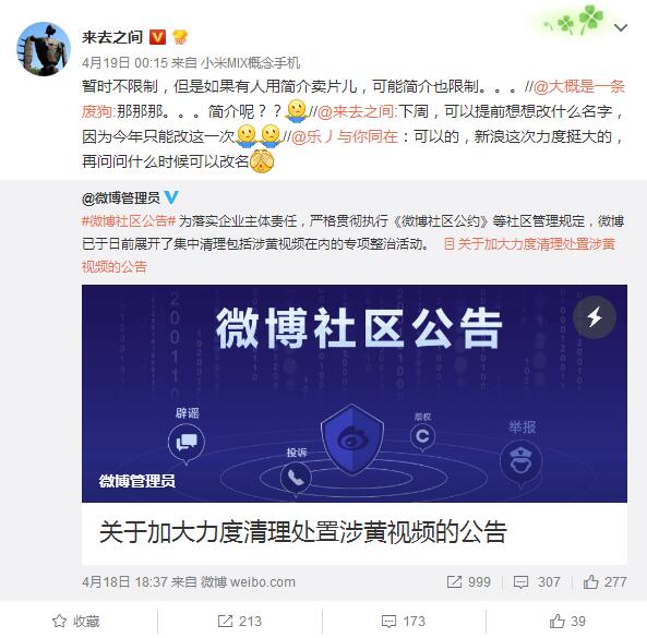 驚喜的是“來總”(微博CEO王高飛)在微博上回答了網友關于微博啥時候可以改名的問題:“下周,可以提前想想改什么名字,因為今年只能改這一次。”