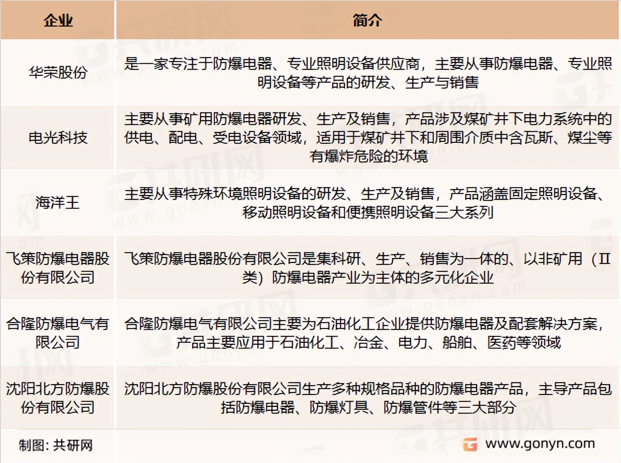 防爆電器主要競爭企業