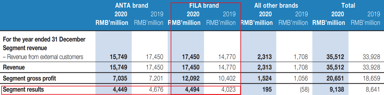 可以說2020年安踏體育凈利潤超越阿迪達斯,這其中FILA貢獻了一半的功勞。