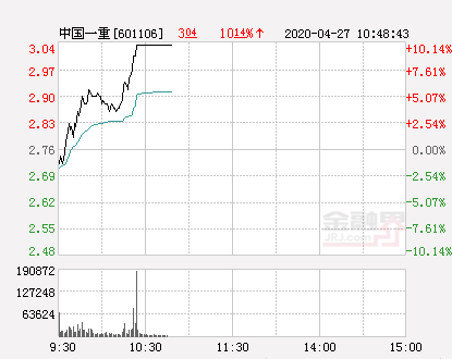 金融界網站4月27日訊 今日中國一重開盤報2.72元,截止10:30分,該股漲10.14%報3.04元,封上漲停板。