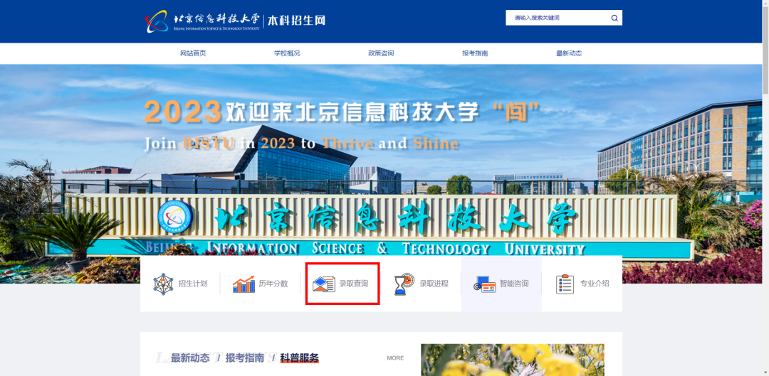 2023年北京信息科技大學本科招生錄取工作正在進行中,即日起錄取結果將陸續公布,各位考生可通過以下方式查詢。