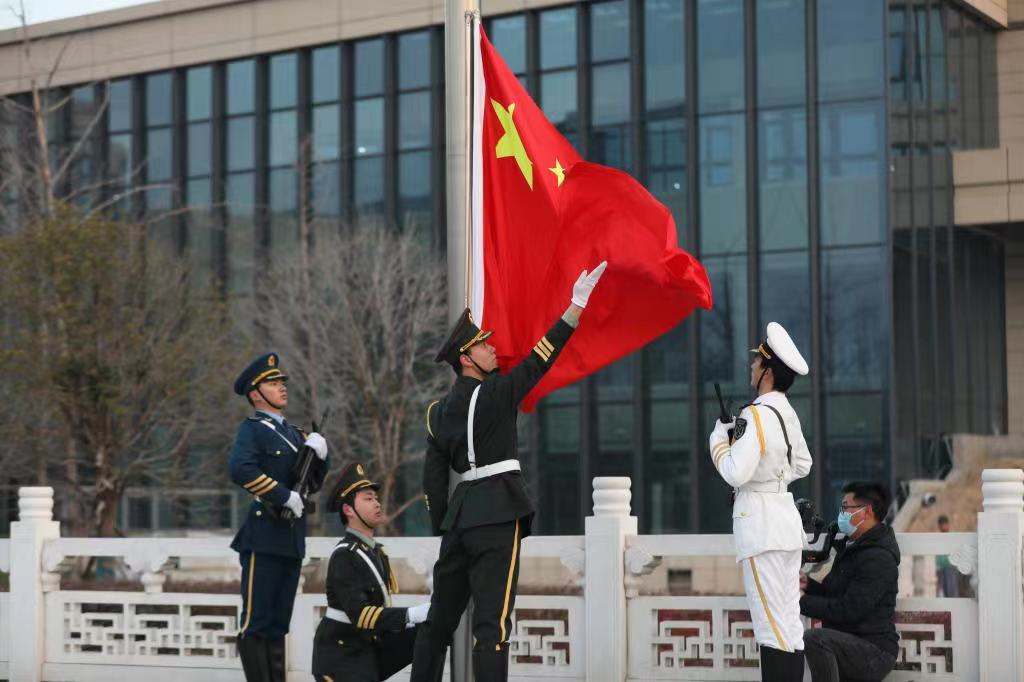 活動伊始,國旗護衛隊邁著整齊的步伐入場。在慷慨激昂、鏗鏘有力的《義勇軍進行曲》樂曲中,鮮艷的五星紅旗冉冉升起,全體人員行注目禮,向國旗致以最崇高的敬意。