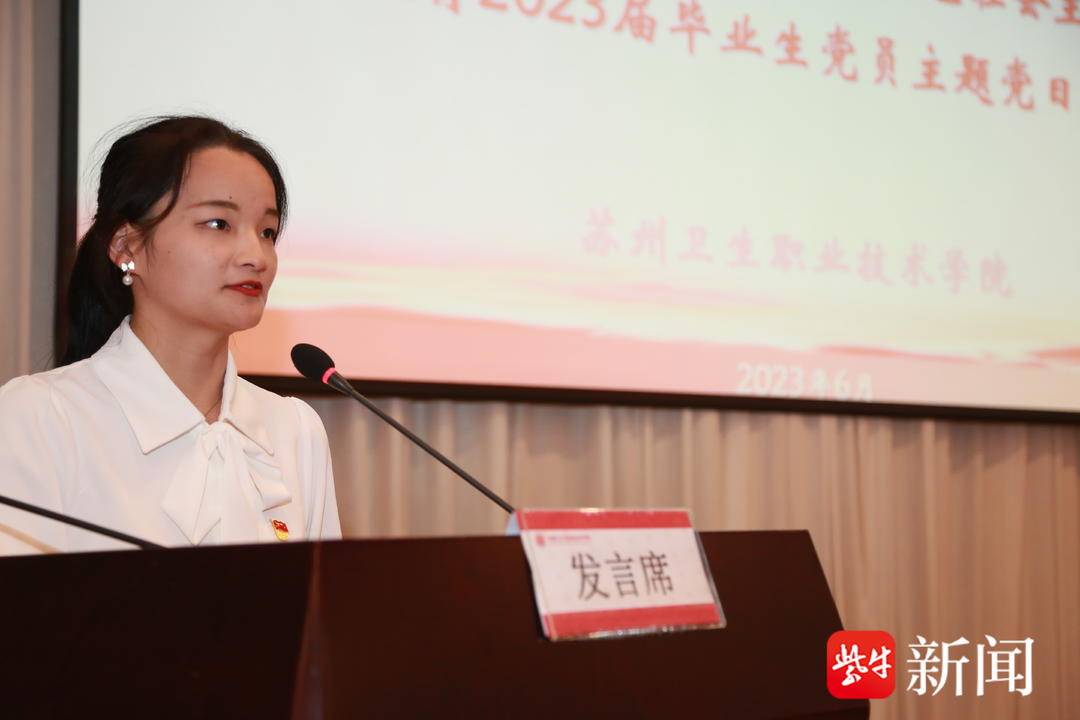 學校黨委副書記陳斌向全體畢業生黨員提出三點希望:一是要永葆一種色,做愛黨愛國的“蘇衛人”,始終堅持愛國與愛黨、愛社會主義的高度統一,自覺將愛國情、強國志、報國行融入到具體行動中。二是要守住一顆心,做意志堅定的“蘇衛人”,堅定信念、逐夢前行。三是要共圓一個夢,做努力奮斗的“蘇衛人”,秉承“敬人敬業、至精至誠”的精神,永葆對醫學的忠誠和熱愛,與祖國同行。