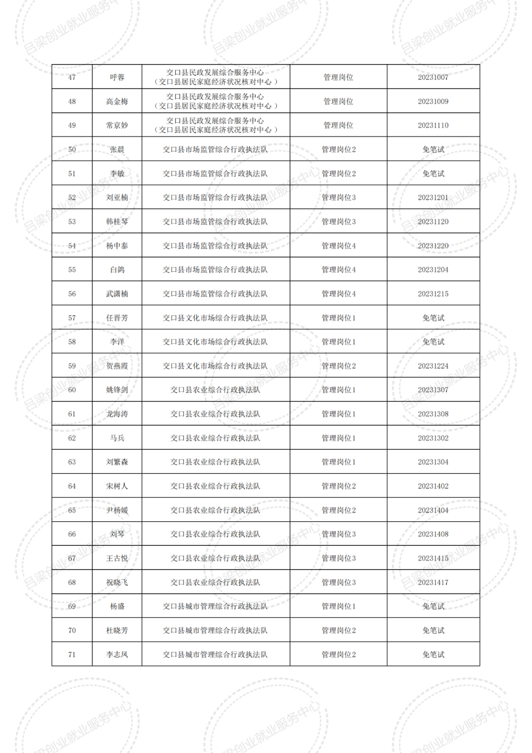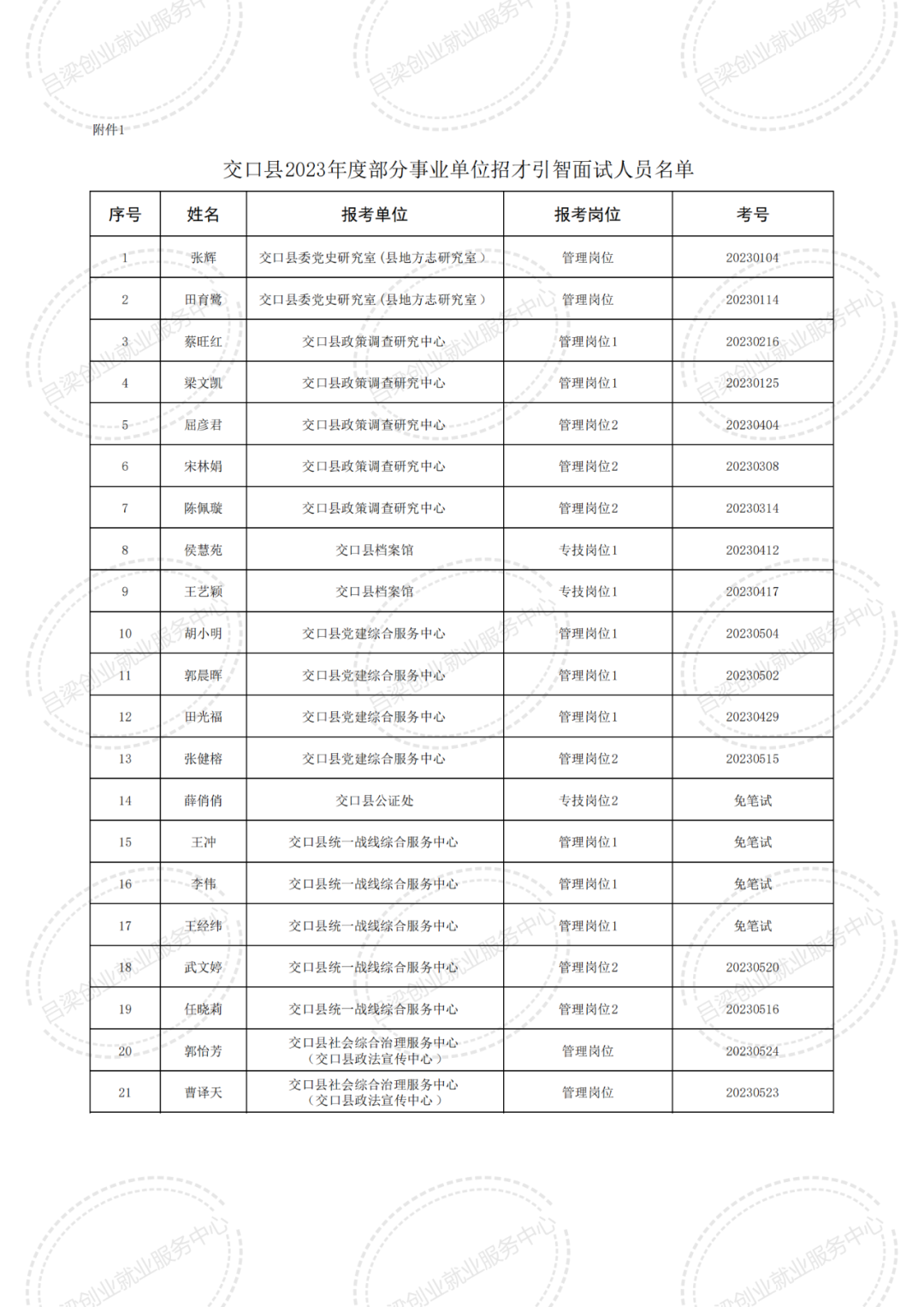 附件:交口縣2023年度部分事業單位招才引智面試人員名單