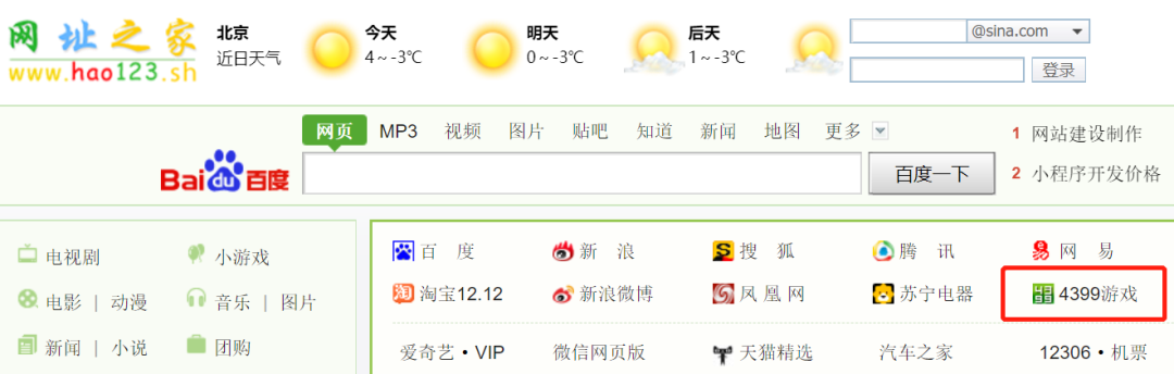 在提到4399之前,我們就不得不先提起hao123網站,畢竟絕大多數的中小學生被這串映入眼簾的神秘數字所吸引,很大程度上都是從打開這個“不上不是中國人”的網站——hao123開始的。