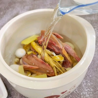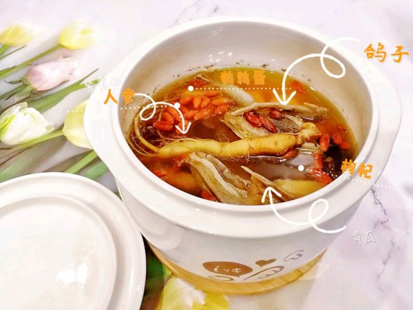 1)新鮮人參有大補元氣的作用,能夠緩解氣虛引起的心悸煩躁、虛汗不止、四肢發冷。新鮮人參對氣虛引起的脾胃功能失調也有改善作用。把滋補的鴿子搭配玉竹,蓮子枸杞,能滋陰益氣、生津潤燥,養心安神提高免疫力。 2)鴿子別再焯水,焯水會降低鴿子的營養,隔水燉更好地保留了食材的原汁原味和其營養價值。