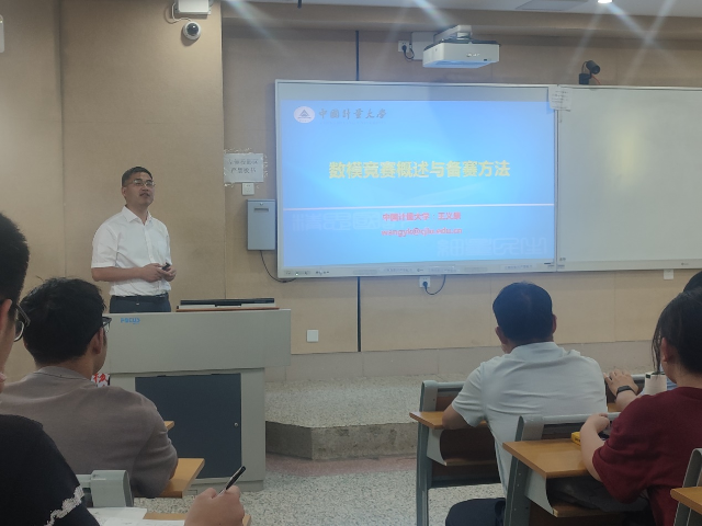 活動由聊大數學科學學院院長夏建偉主持,中國計量大學理學院副院長、數學建模競賽總教練王義康教授作了題為《數模競賽概述與備賽方法》的報告,并與同學們交流了數模競賽論文結構與寫作技巧,共同探討近年來全國大學生數學建模競賽真題的特點。王教授還為同學們如何有效備戰數模競賽,學校如何更好地組織數學建模競賽與培訓工作提出了許多建設性的建議。