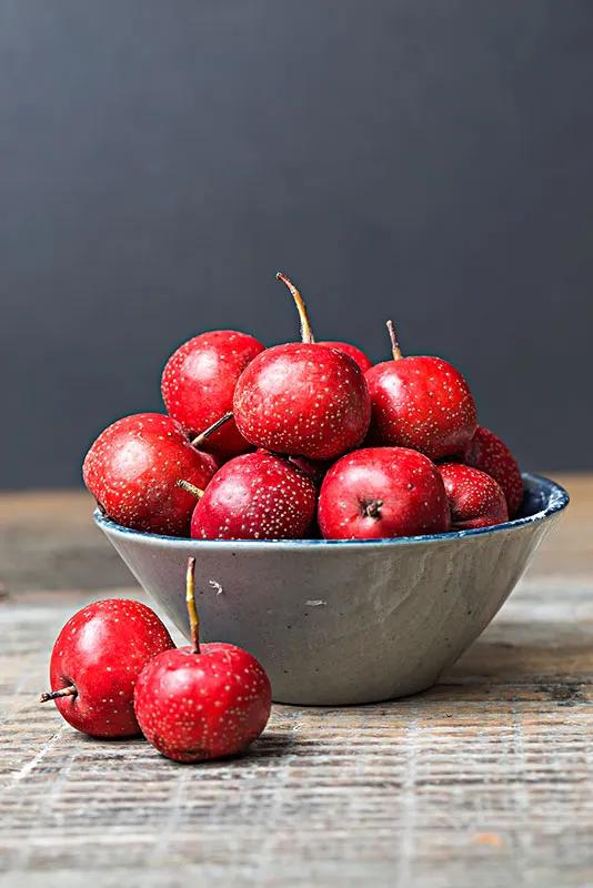 以個大、肉酸者為佳。山楂有很高的營養價值。鐵和鈣特別豐富,鈣含量居各種果品第一位,維生素C的含量比蘋果多17信,有開胃消食,化滯消積的功用。飲食業用它做紅果醬、京糕、蜜餞紅果、炒紅果等,還可制成各種糕點的餡心和罐頭等。