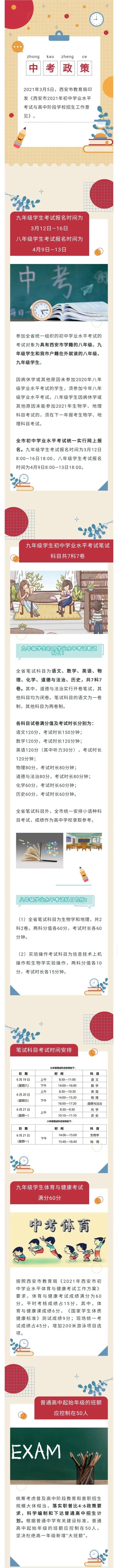 導讀今天,西安市教育局發布關于印發《西安市2021年初中學業水平考試與高中階段學校招生工作意見》的通知。西安市2021年中考政策公布重點全在這里了↓↓《西安市2021年初中學業水平考試與高中階段學校招生工