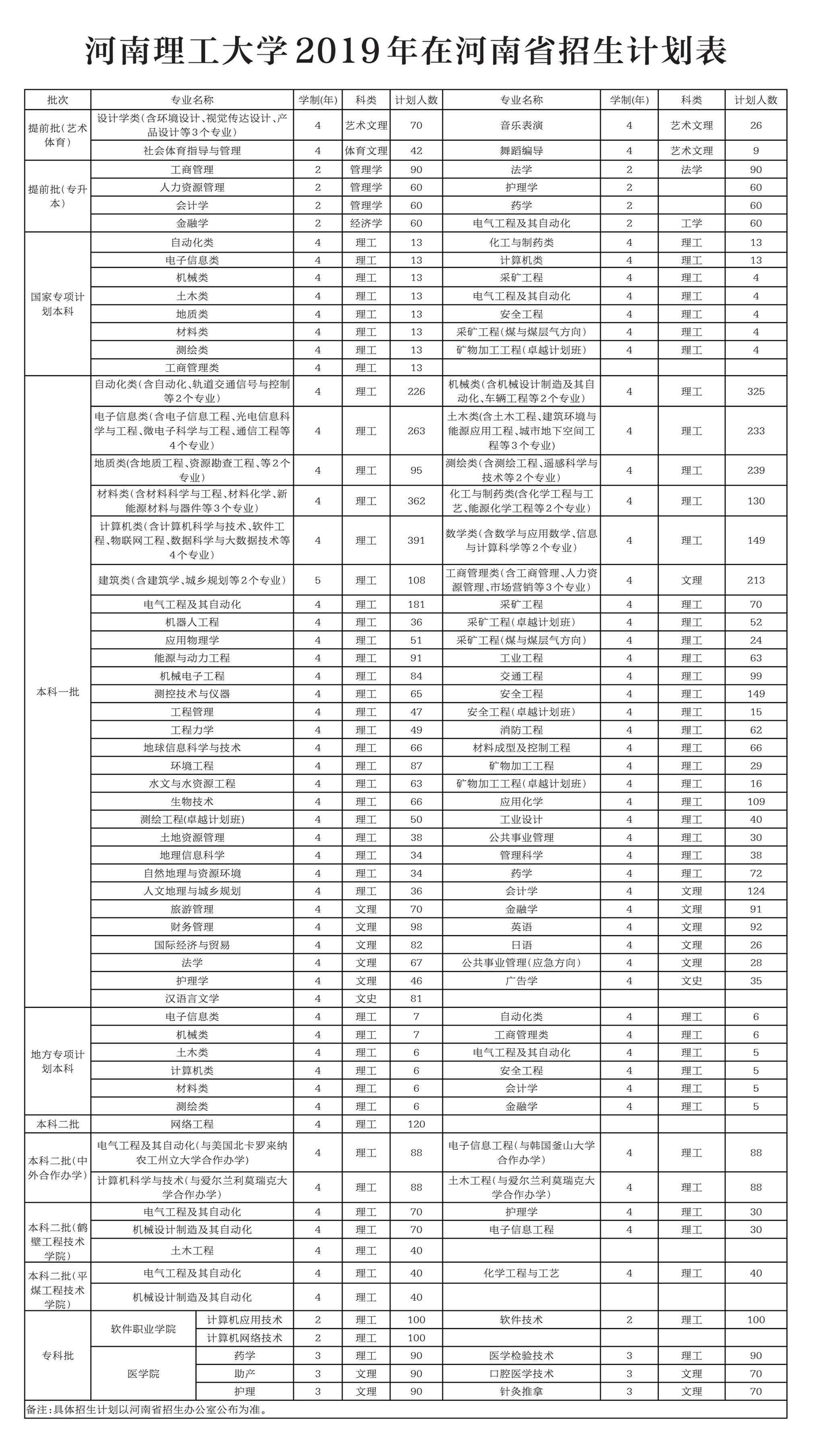 三、2019年在河南省招生計劃