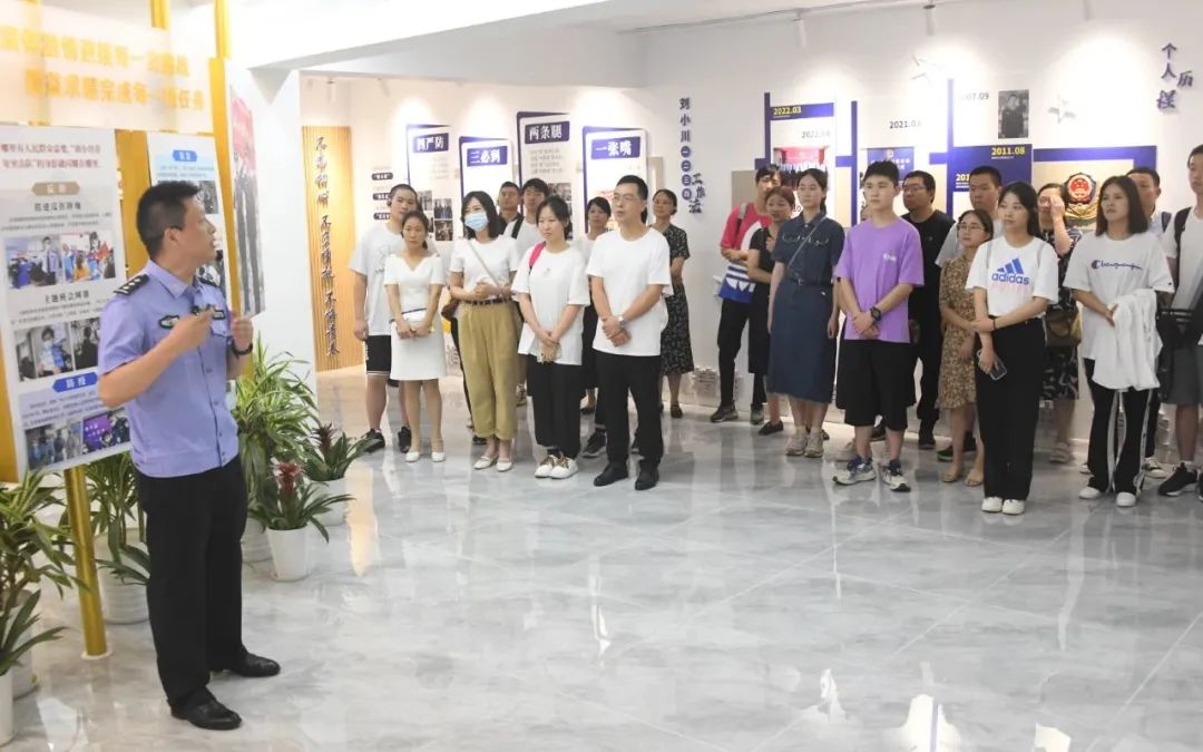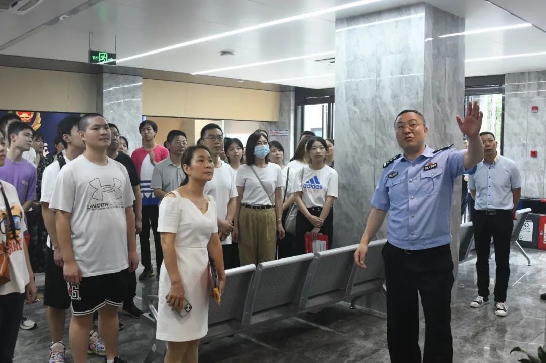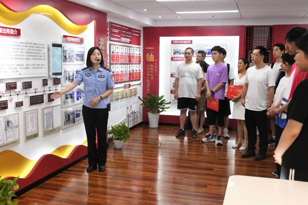 在陽溝街派出所,新生代表及家長先后參觀了派出所主防、綜合指揮室建設;派出所黨建文化室、訓練角;民警及實習生宿舍。