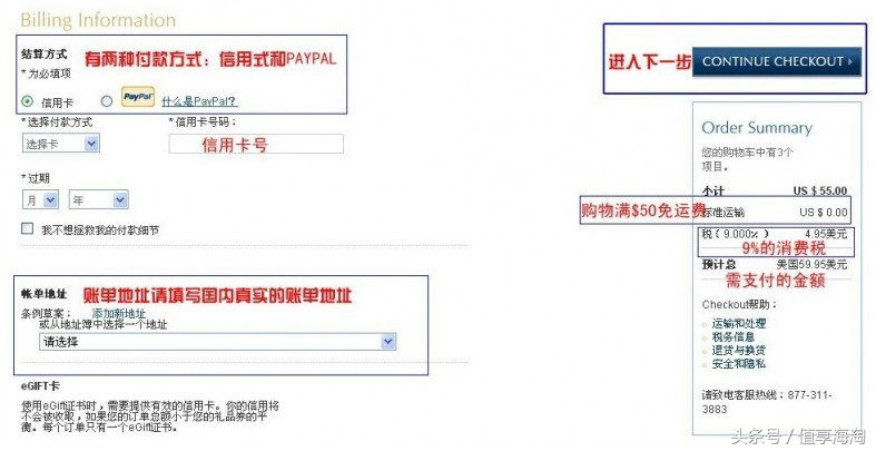 7、選擇支付方式,EL官網提供信用卡和PayPal兩種支付方式,如圖所示進行填寫。