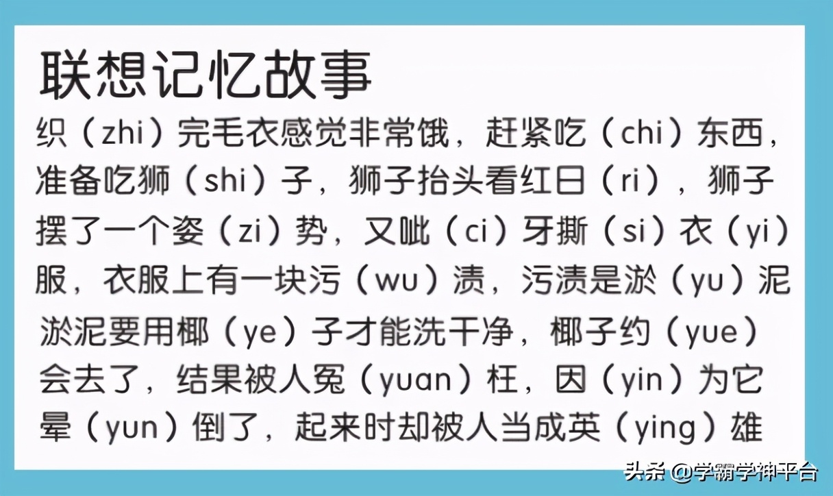 這16個整體認讀音節,記憶起來,有一定的難度,尤其對于地域差異舌前舌后音不分的孩子來說,尤其困難。以下三種方法,可以根據自己的實際情況有選擇的記憶。只要功夫深,鐵杵磨成針。