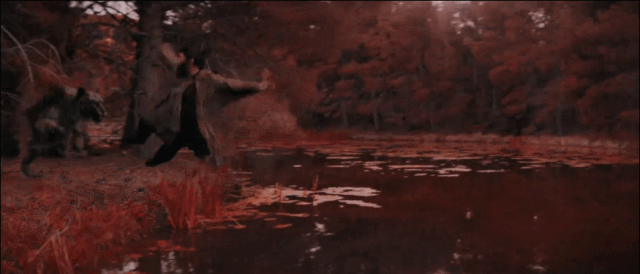 本劇開場就是一場驚心動魄的追逐戲份,孫悟空在后面追,“妖怪”在前面跑,一會幻化成魚,一會變成狼,觀感拉滿。