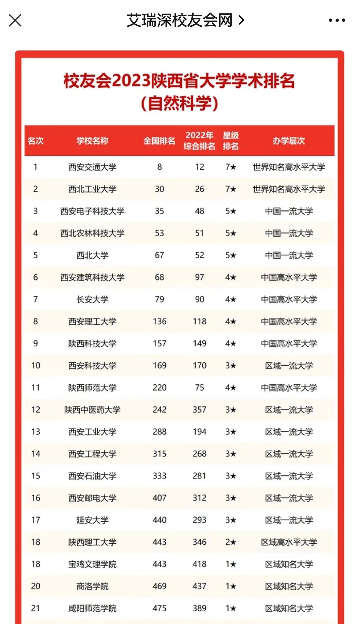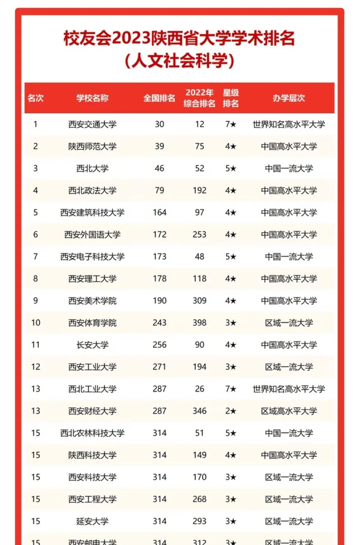 在最新發布的2023年陜西省大學學術排名中,這兩所省屬大學在自然科學和人文社會科學領域表現強勁,為校友和學校帶來了驕人的成績。