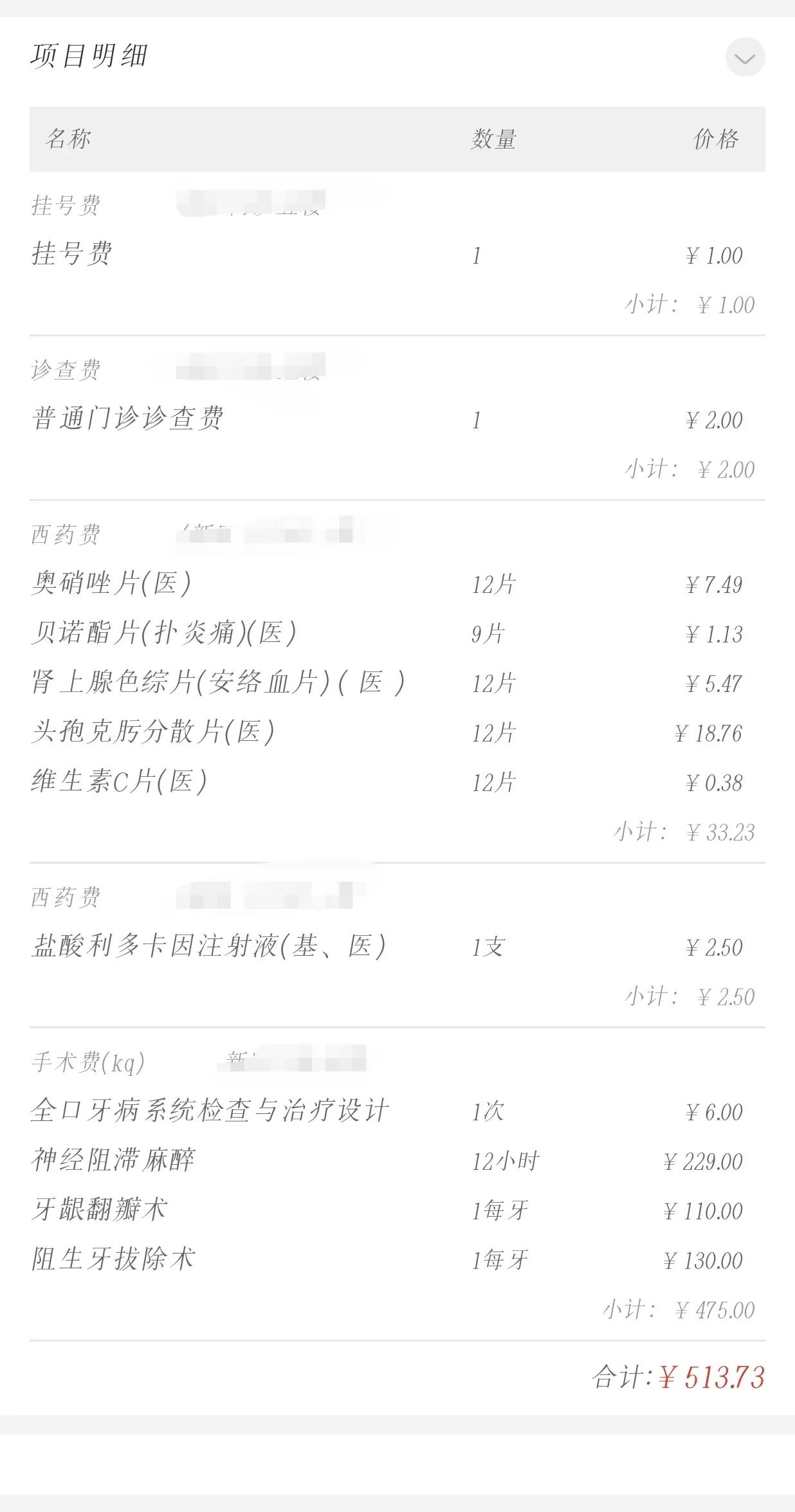 所以拔一顆牙我總共用了643.73元。
